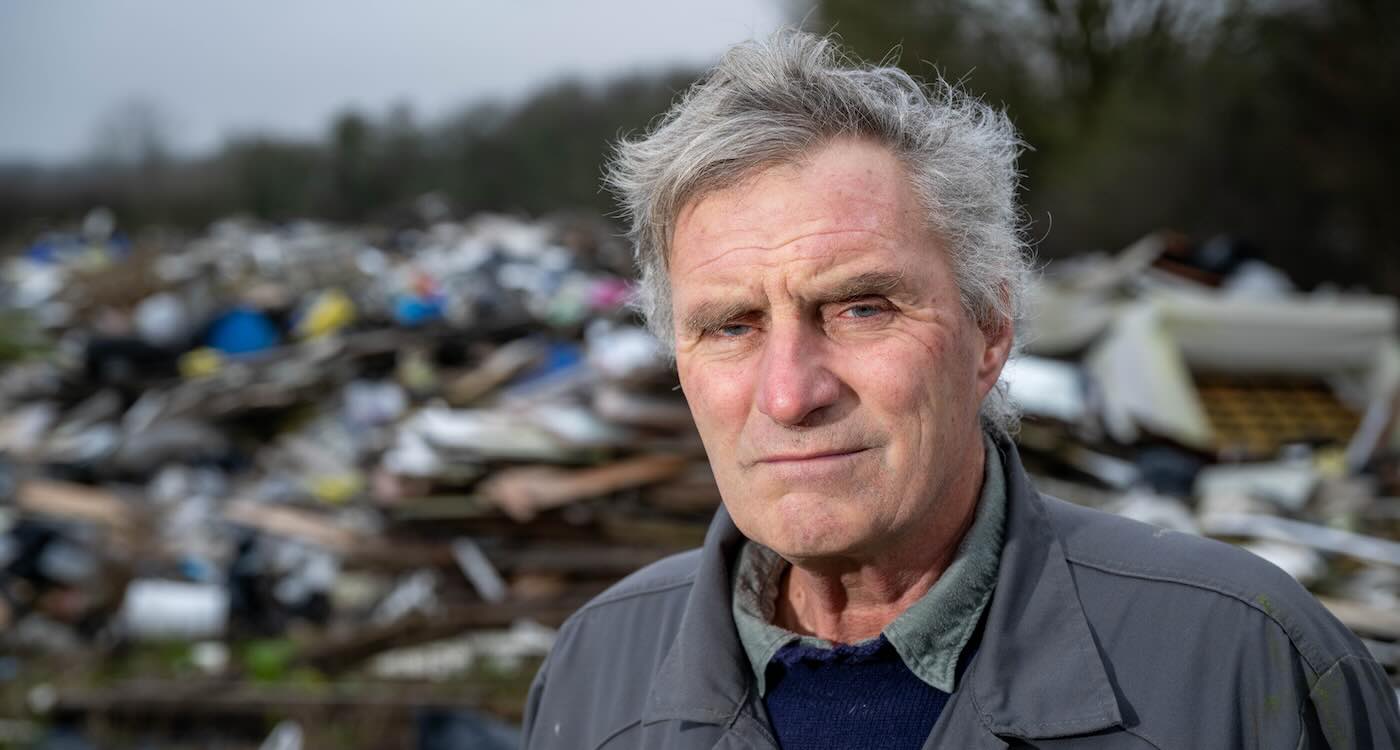 Elderly farmer Will Dickinson in field with illegally dumped trash – SWNS