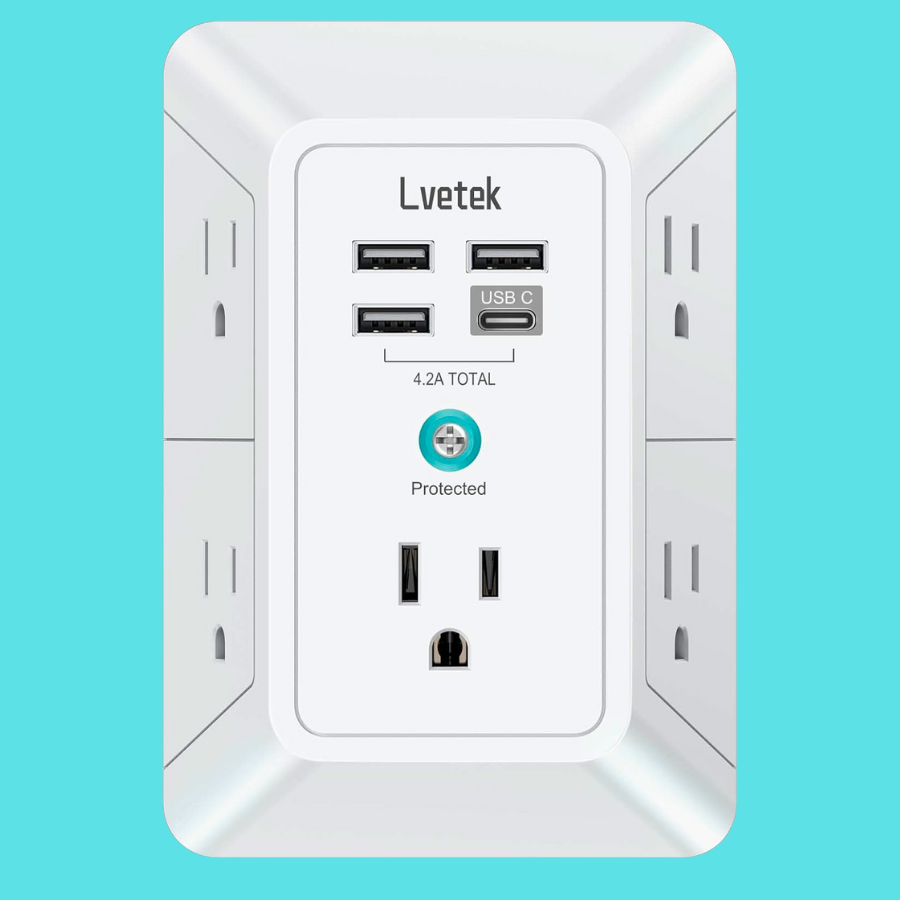 Maximize your existing outlet with this sleek, surge-protected plug-in, which features five traditional AC outlets, one USB-C port and three USB-B ports to support your different devices and their specific chargers.