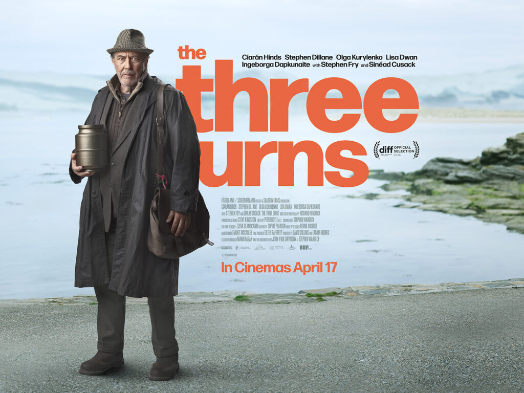 The Three Urns follows Mr O’Connor, played by Hinds, as he returns to the country of his birth to scatter the ashes of his beloved wife. Along the way, a series of encounters gradually rekindles his love of life.