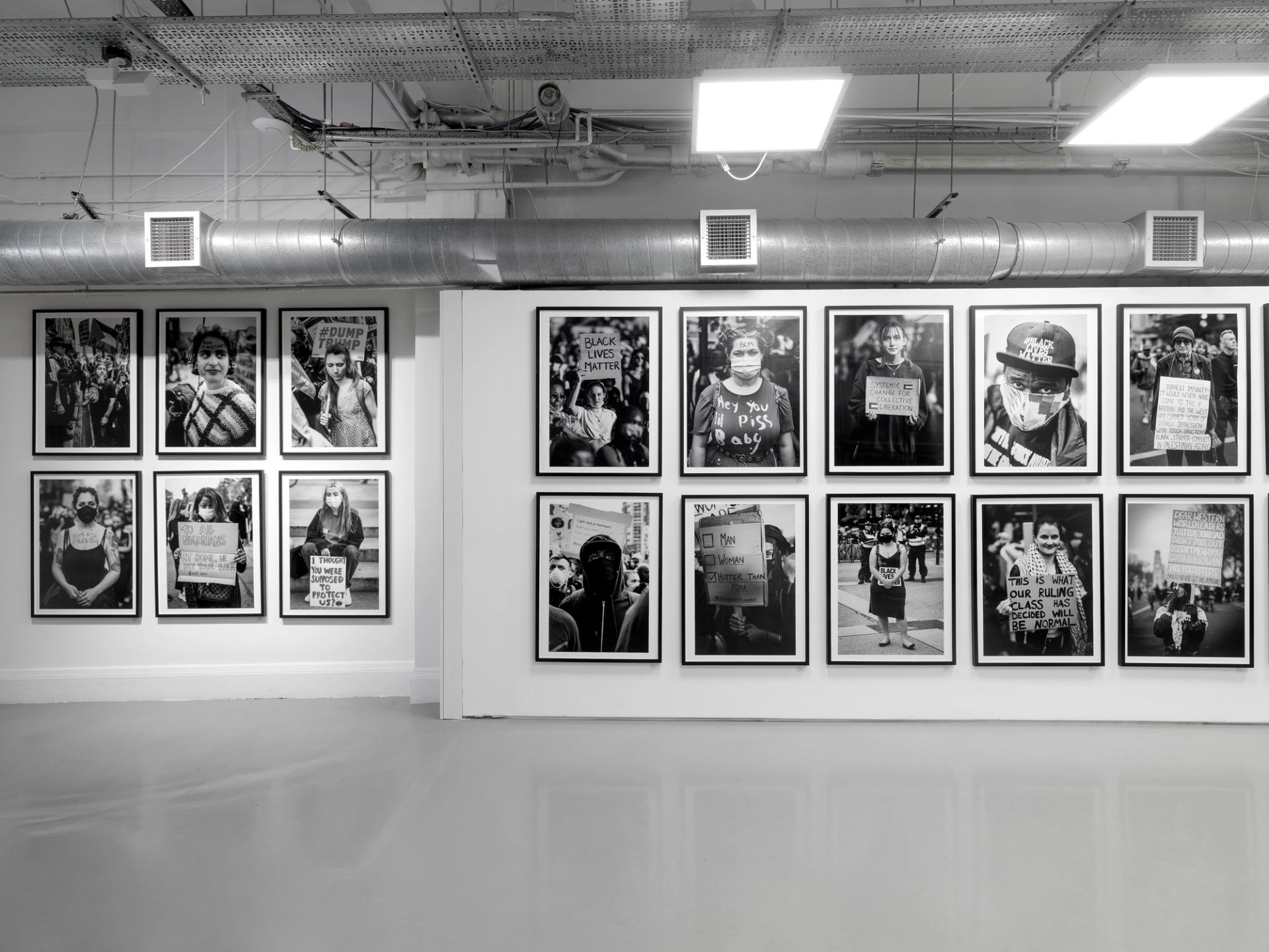 The project brings together pictures that Harriman—who made his name photographing covers for Vogue UK—took at protests over the last seven years. It debuted in a solo exhibition at Hope 93 last summer; now, it has returned with new work as a long-term fixture, supported by private collectors who have agreed to display works they own permanently in the gallery’s lower floor.