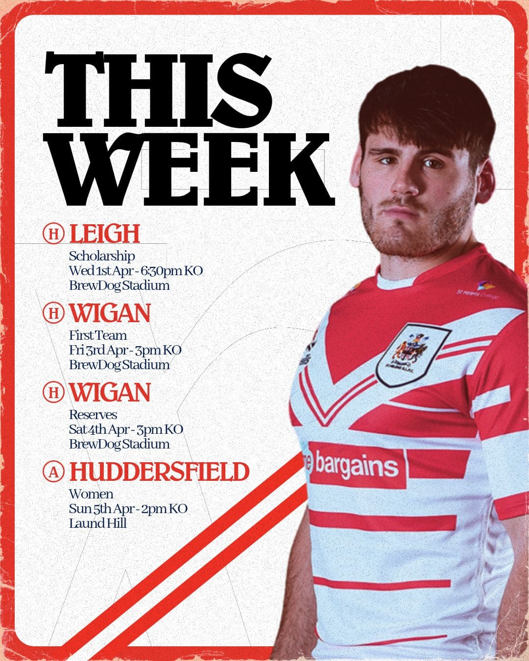 The traditional Good Friday Derby against Wigan Warriors headlines a packed schedule, whilst our Under 16s, Reserves, and Women’s sides are also all in action across the week.