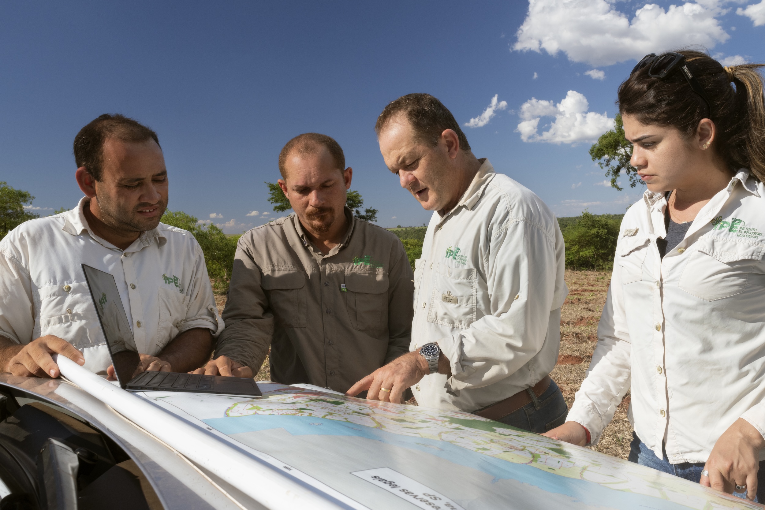 IPÊ specialists analyze maps of the Pontal do Paranapanema region. Image by IPÊ archive.