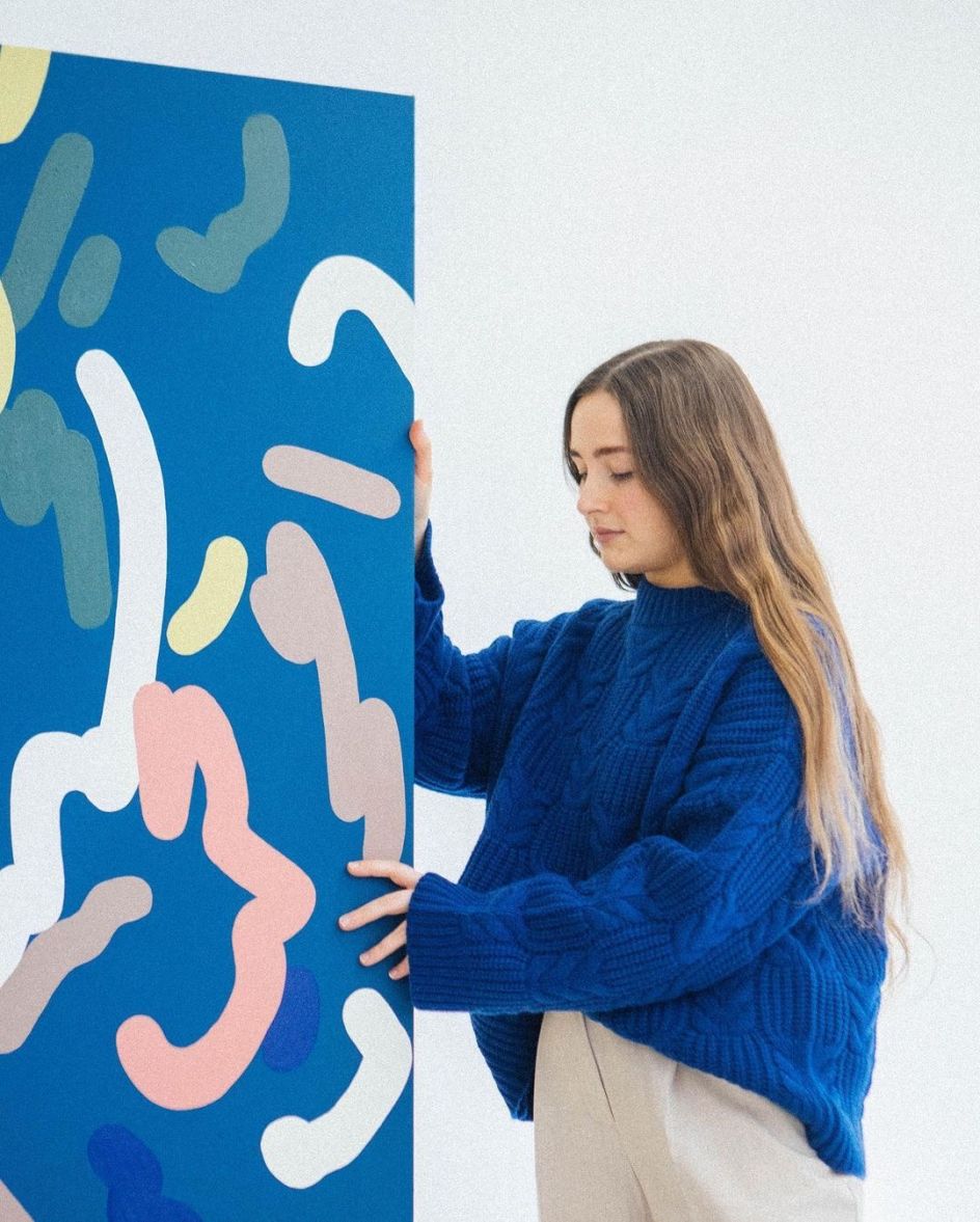 There’s something deliberately unnerving about her monolines; they’re too clean to be handmade, too warm to be digital. That’s the point. This new body of work, however, moves somewhere more physical, more bodily. The pieces have weight, literal and compositional.