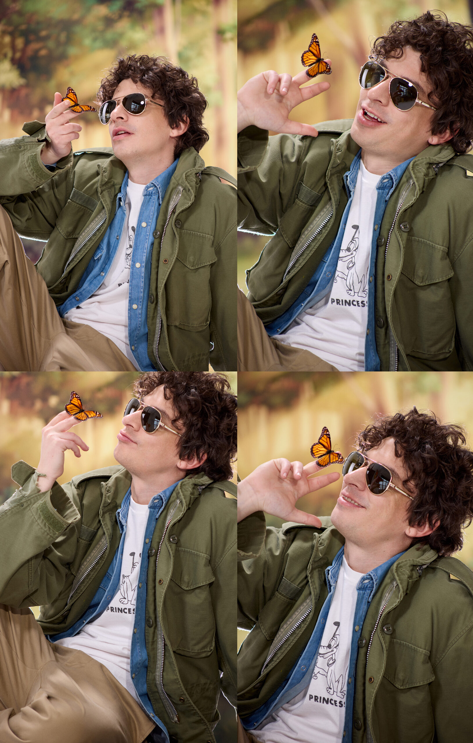 Jacket Stylist’s Own, Shirt and Pants J. Crew, T-shirt Hanover, Sunglasses Ray-Ban.