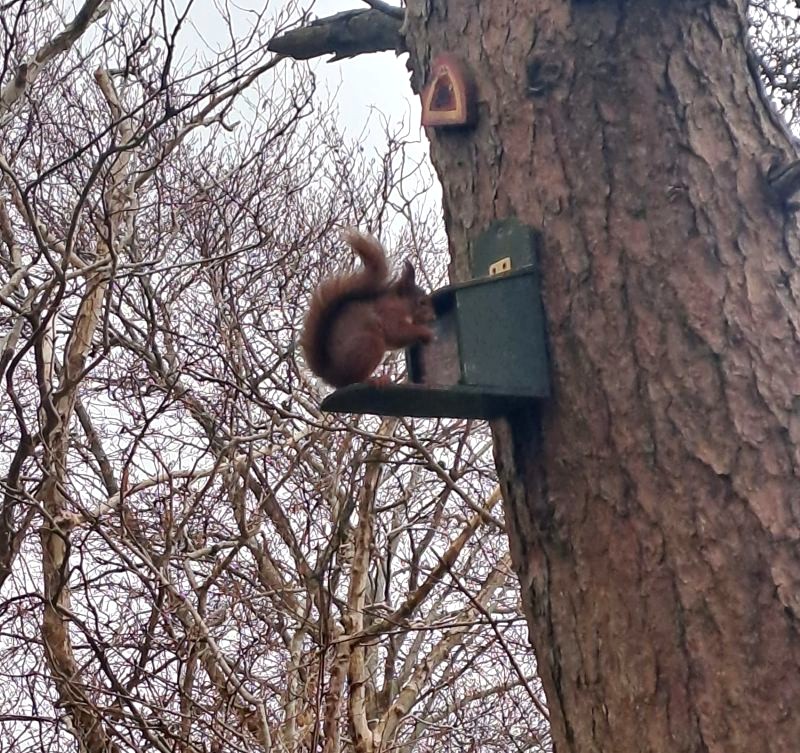Now is a good time of year to catch a glimpse of the shy reds because many trees are still bare, and it is easier to see squirrels and their nests (dreys) in the branches.