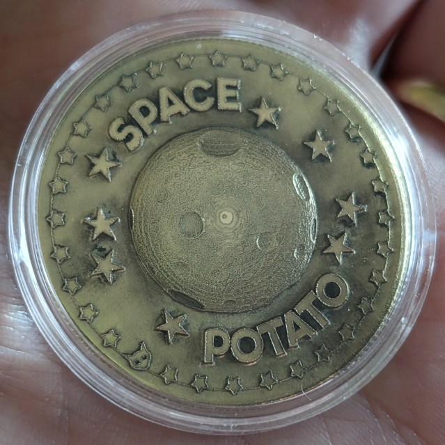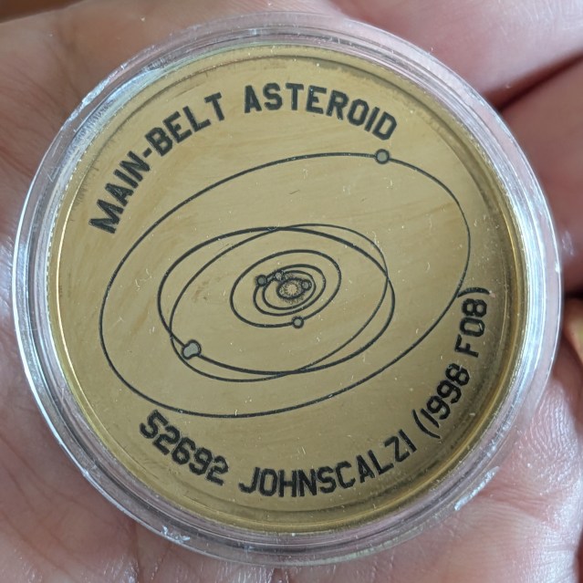 PS: that coin with my asteroids orbit on it was given to me by a fan at the San Antonio Pop Madness convention (whose name escapse me at the moment but they can certainly announce themselves in the comments), and it was super-cool to get it. The other side of the coin is just as awesome: