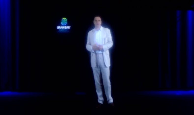Ferguson started to speak, but the volume stayed on zero. Worse, the world’s leading conservative historian was three feet tall. The hologram continued inaudibly until a panicked soundman appeared and “rewound” the mini-historian like a Betamax tape.