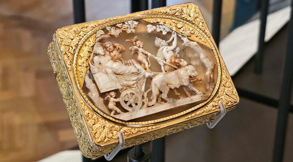 Enamel portraits of Scottish monarchs line one display, while Frederick the Great’s snuffboxes are given pride of place in specially designed cases. Elsewhere, the tiniest objects often prove the most compelling — intricate boxes and miniature artworks so finely detailed that you find yourself leaning in, trying to work out how they were even made.