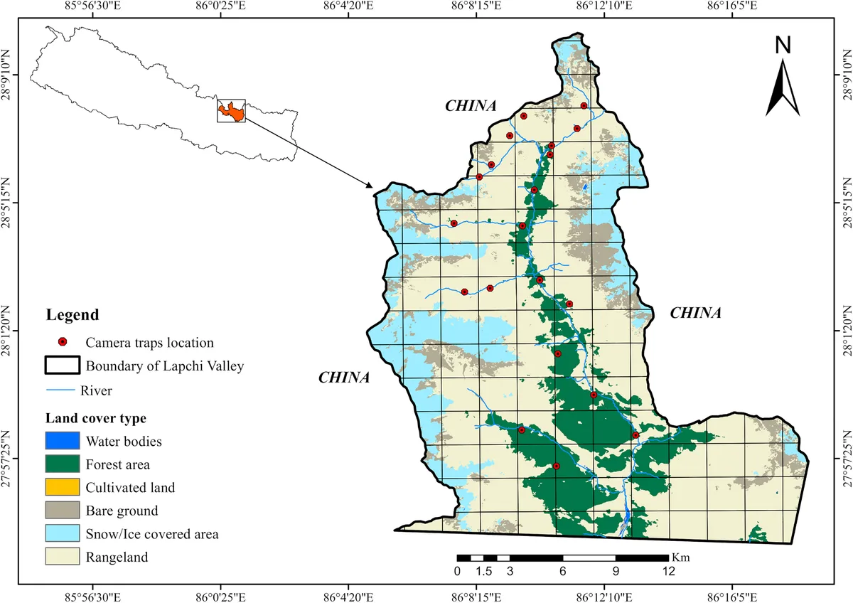 Lapchi Valley study area, showing locations of camera trap placement. Credit: Narayan Prasad Koju et al. 2026 PLOS One | creativecommons.org/licenses/by/4.0/