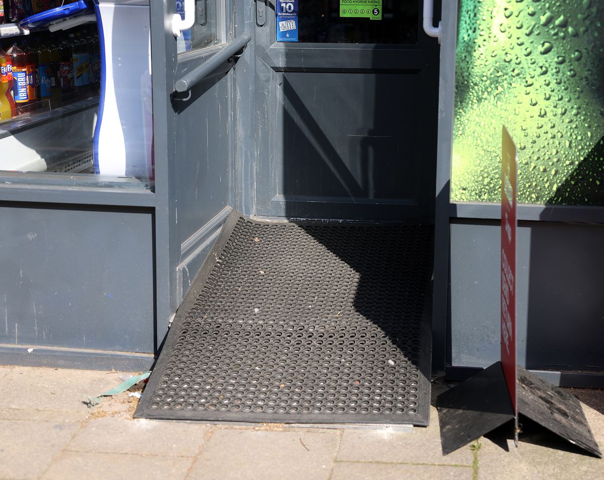 His report read that outside the shop is a metal ramp designed for wheelchair users. It was said to have ‘quite a slope’ – and not fixed to the ground as it is removed every night. It has a rubber mat on top which is not fixed either.