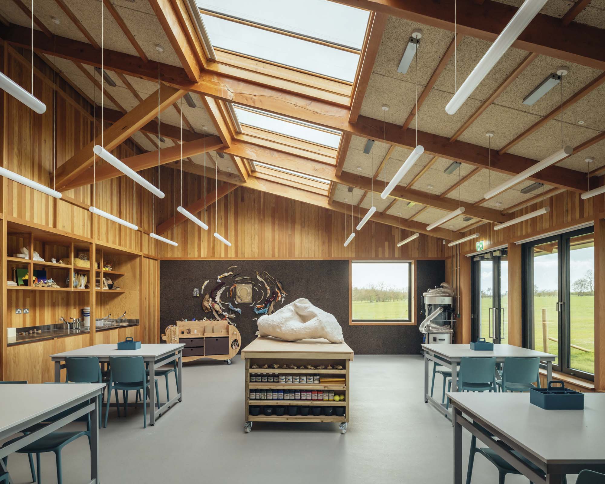 We are thrilled with the new Sheep Field Barn. Externally, it retains the feel of the former agricultural barn known by Henry Moore, while internally offering state-of-the-art facilities for exhibitions and creative making. The building sits harmoniously within Moore’s historic landscape, in quiet dialogue with his monumental sculptures in the Sheep Fields.