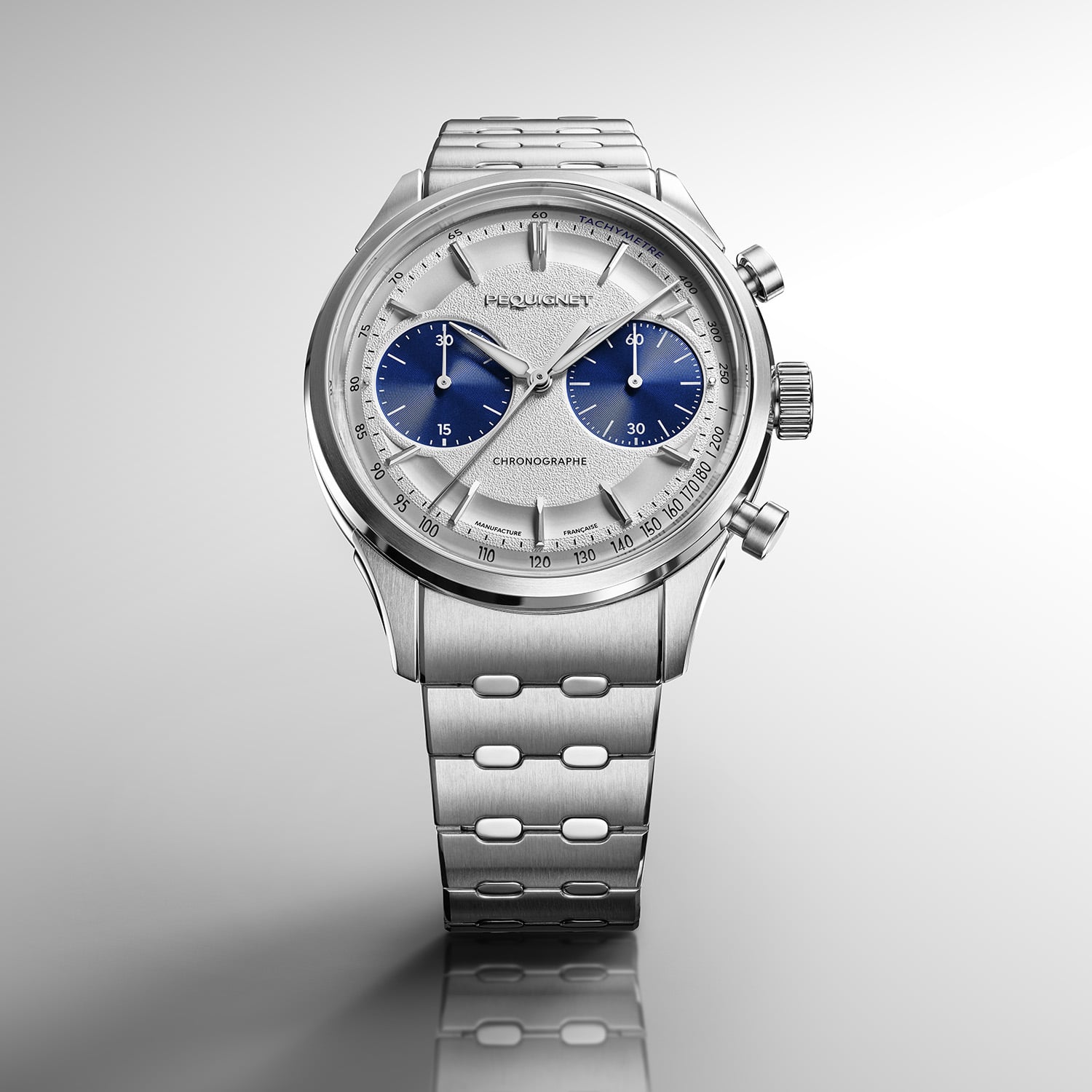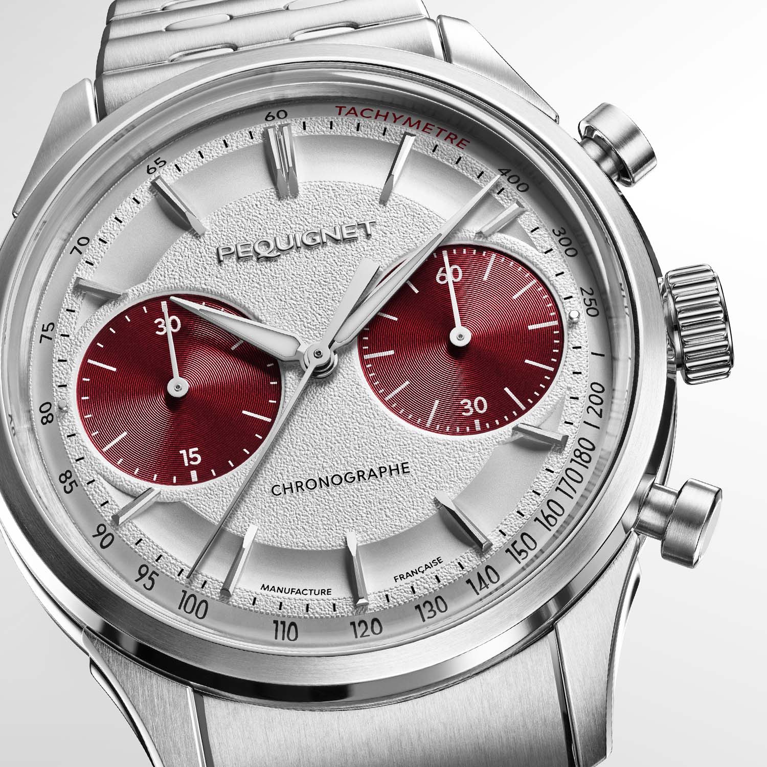 Pequignet’s Calibre Initial, a thinner (4.2mm), more compact, and more versatile everyday automatic movement positioned below the Calibre Royal, provides the base for the new chronograph movement. Developed with a prestigious Swiss manufacture, the Calibre Initial Chronograph is Pequignet’s fifth movement and is a relatively slim, cam-actuated chronograph that is, as the brand explains, more resistant to shocks than a column-wheel setup. Unfortunately, the brand has not provided details on the frequency or its power reserve.