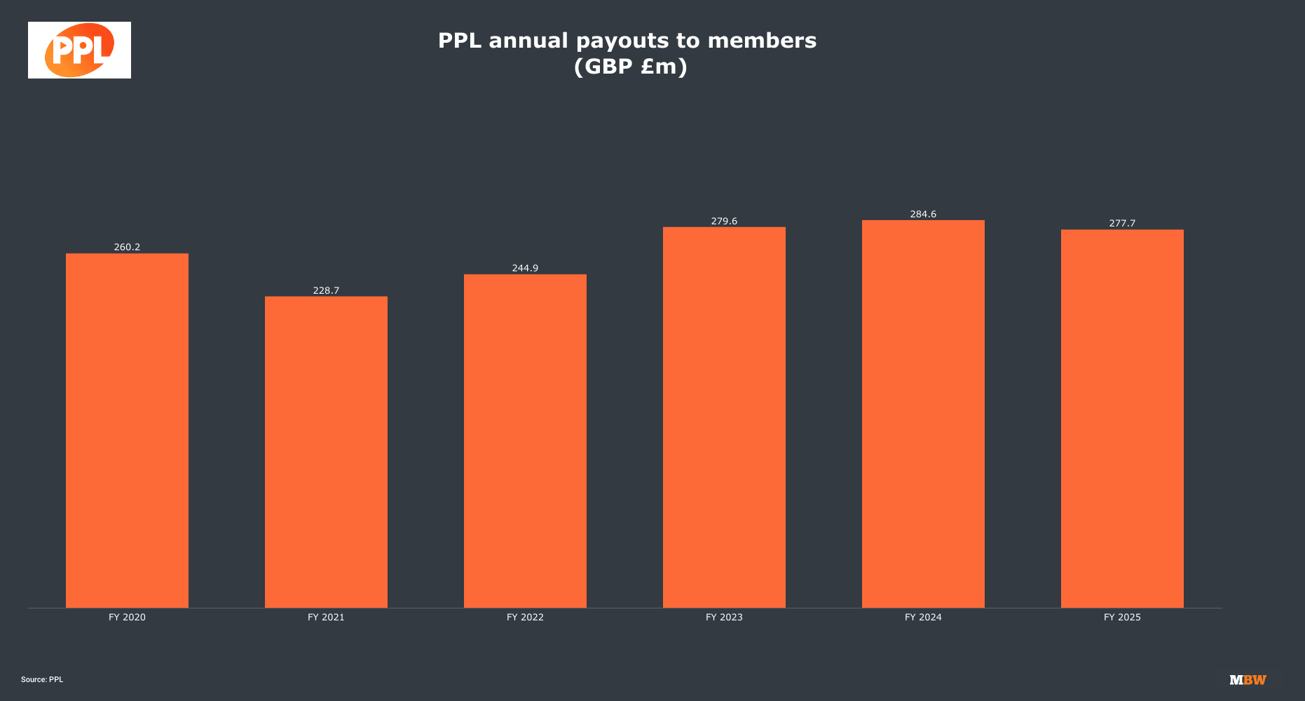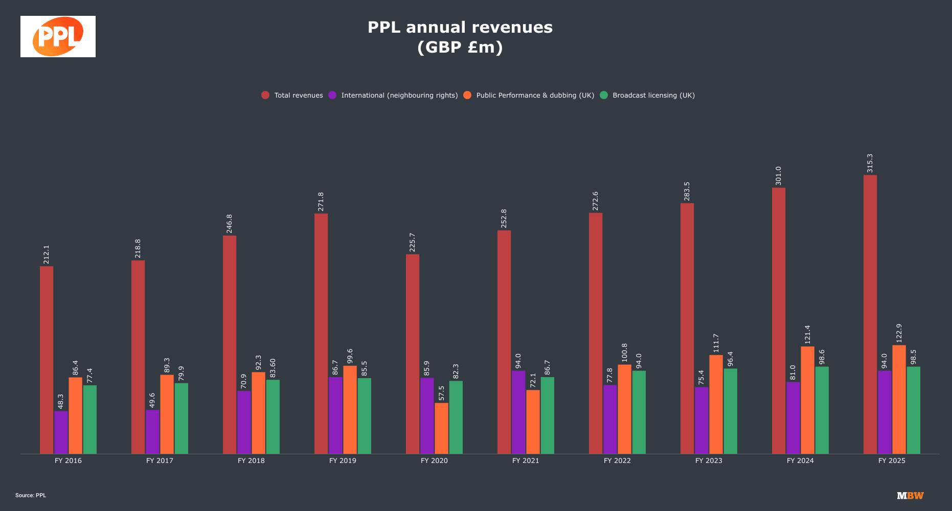 In Q4 2025, PPL reported royalty distributions of £54.3 million ($72m), up from £45.3 million ($60m) in the same period a year earlier.