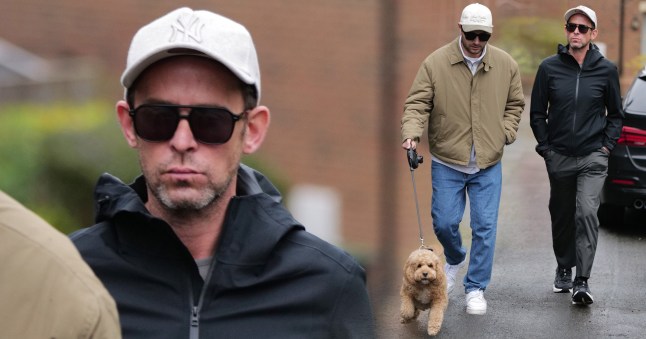 Scott Mills and Sam Vaughan were seen walking their dog (Picture: W8 media)