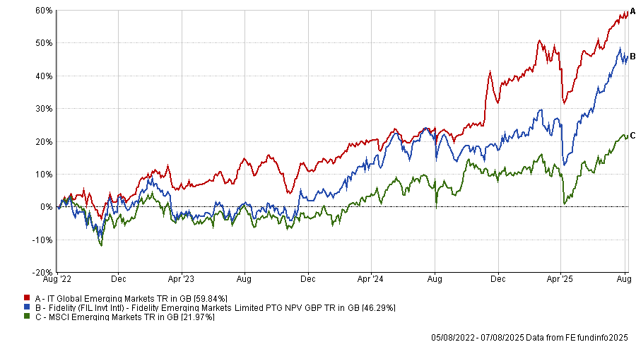 This thinking has helped the trust over the past three years, with Fidelity Emerging Markets delivering a total return of 46.3%, beating the MSCI Emerging Markets benchmark.