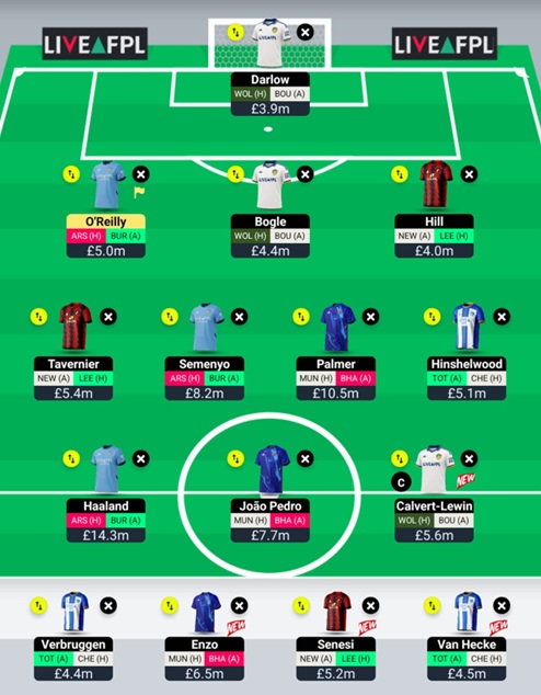 I’ll personally be using the Bench Boost, where any transfer depends on the fitness of Nico O’Reilly (£5.0m).