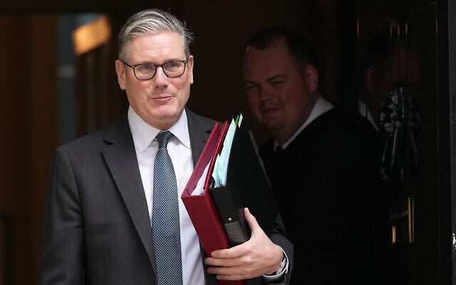 Britain’s Prime Minister Keir Starmer leaves 10 Downing Street to attend the weekly Prime Ministers’ Questions session in parliament in London, March 11, 2026. (Frank Augstein/AP)