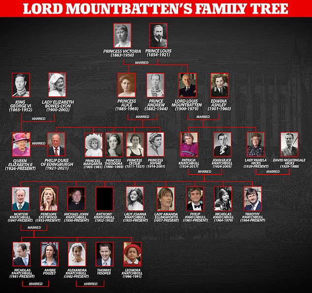 Louis Mountbatten’s grandson is Norton Knatchbull, Alexandra’s father.