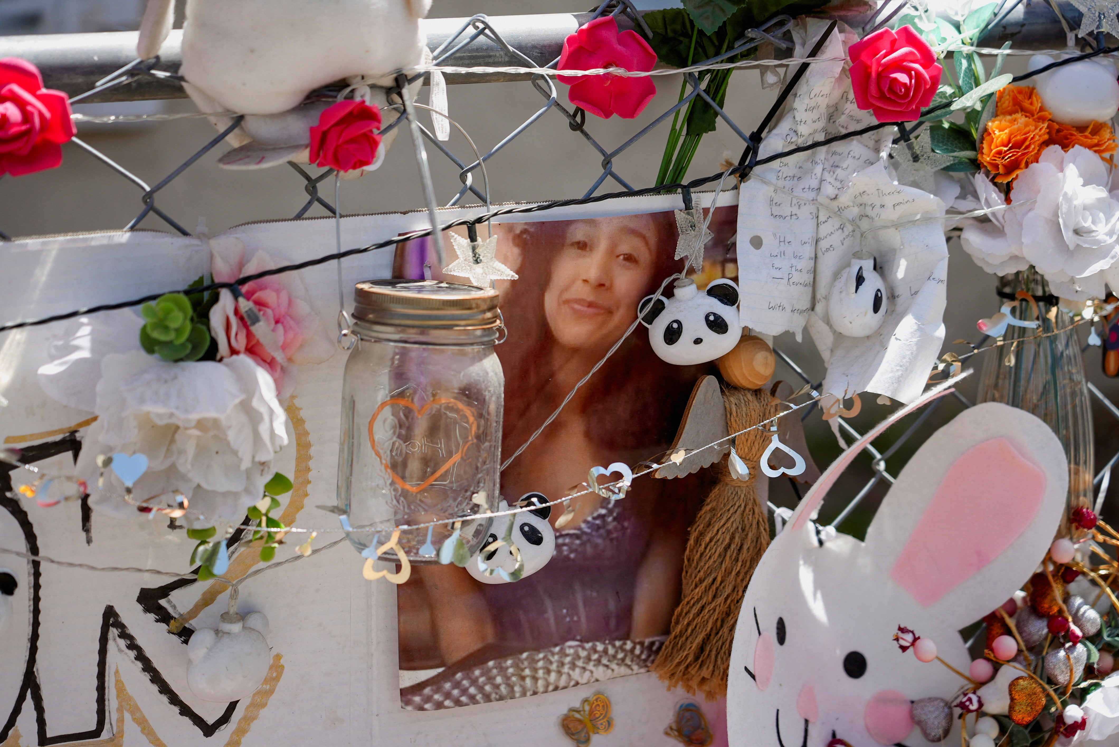 A neighbor created a memorial of pictures, candles and flowers dedicated to Celeste Rivas Hernandez in front of the slain teen’s Lake Elsinore home.