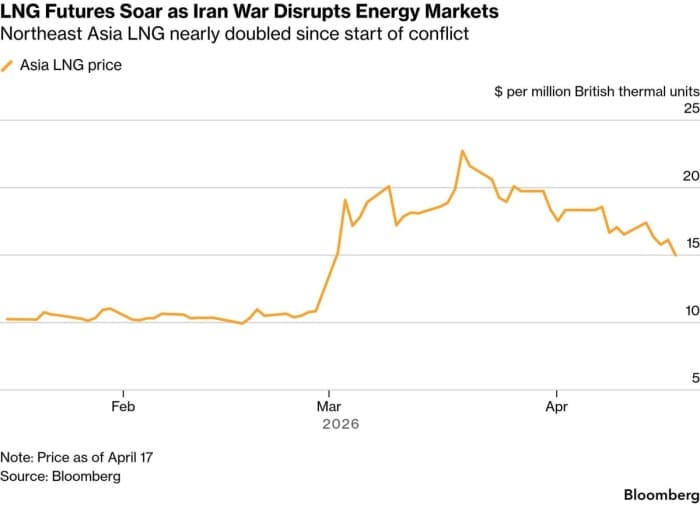 – Crude oil prices have spent most of March-April seesawing up and down, reacting to Iran’s closure of the Strait of Hormuz and Donald Trump’s Truth Social posts. Global LNG prices have been declining for the past four weeks, defying upward swings in other commodities.