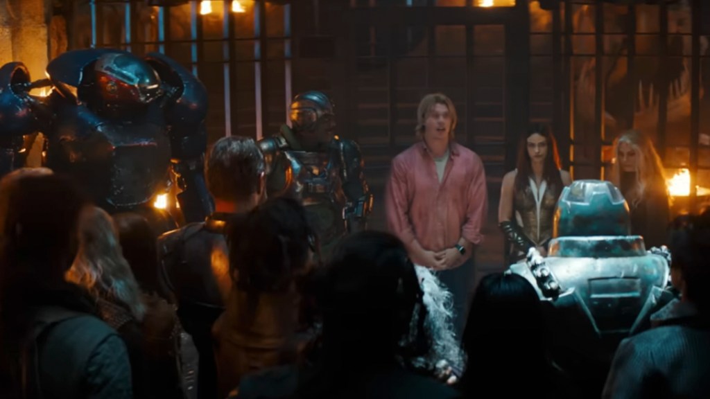 This seems to happen soon after Teela brings Adam back to Eternia, as he doesn’t have the Power Sword with him in this shot, and he hasn’t transformed into He-Man yet; otherwise, the other characters would likely know who he is already. The CinemaCon footage featured an even more extended version of this scene, but that footage is likely not going to be released ahead of the film.