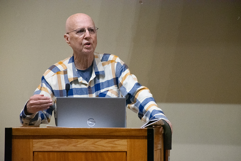 Founder Mike Rhodes reflected on the origins, successes and challenges of the Community Alliance newspaper. Photo by Chris Schneider