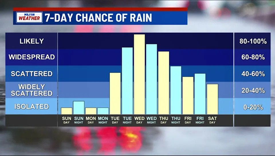 Gusty winds will accompany the rain with gusts expected to exceed 35 mph along the coast Tuesday and Wednesday, according to NWS.