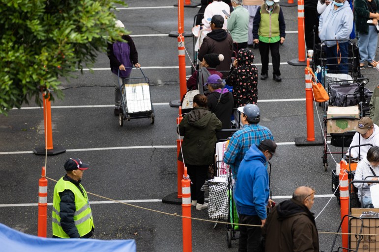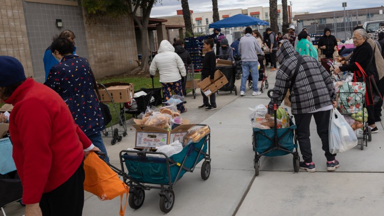 People wait in line at the Seva Collective Food Distribution on Nov. 22, 2025. Credit: ERIKA TAYLOR, Voice of OC