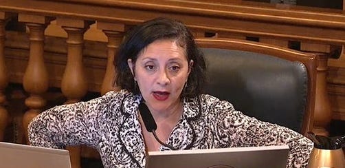 Sup. Myrna Melgar, seen here during a January meeting, wants to make landlords wait longer than 5 years to redevelop an empty building. (Courtesy SFGovTV)