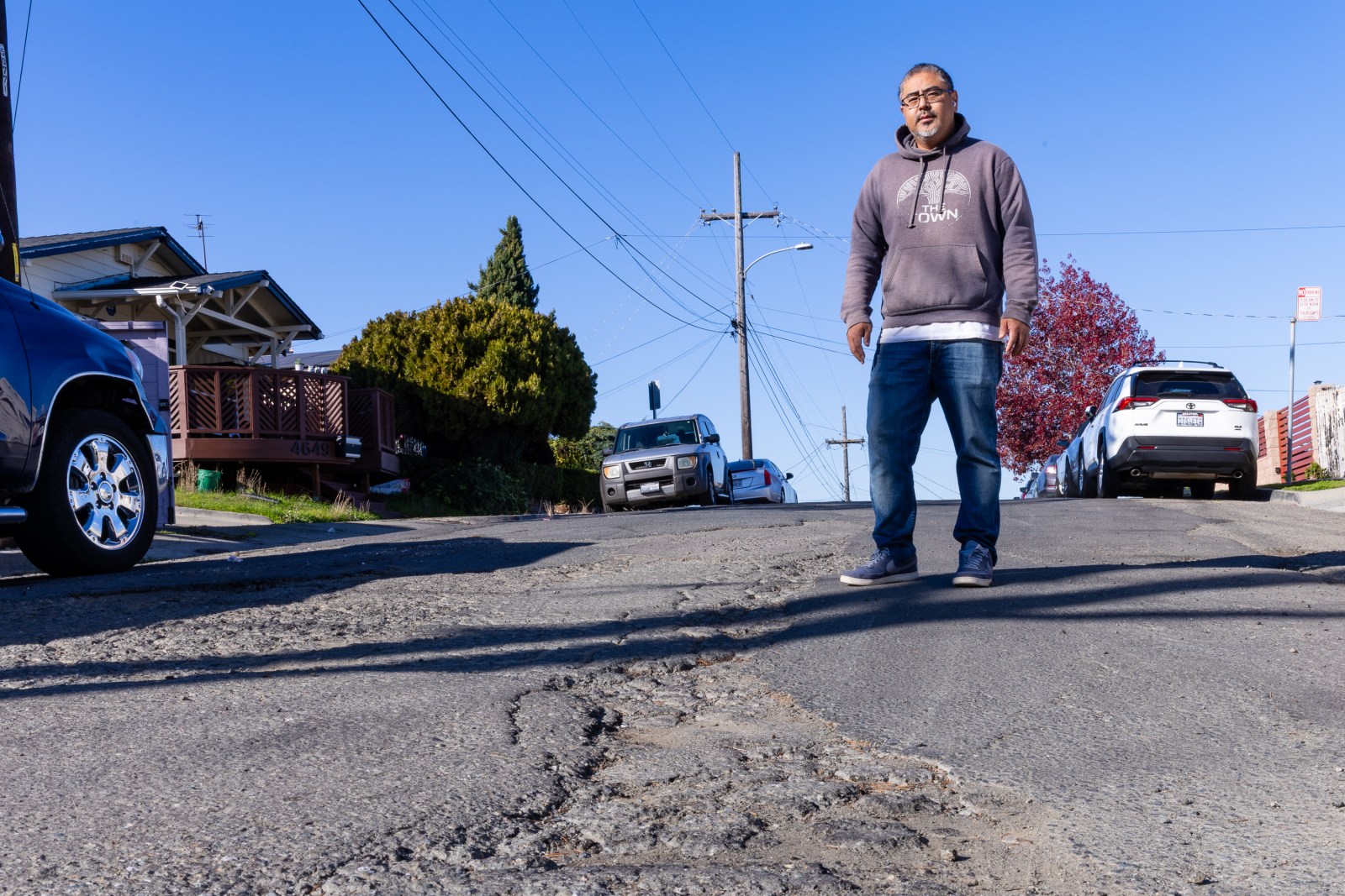 On a street lined mainly with Black and brown families, many of whom said they have lived there for decades, everyone was highly aware of the historical lack of attention. Smith, the one who showed us his bent car rims, said he moved from Vallejo to Oakland during the pandemic. He said the cost of living was higher there, but at least the roads were better. “It’s making me second-guess my move, honestly,” he said.