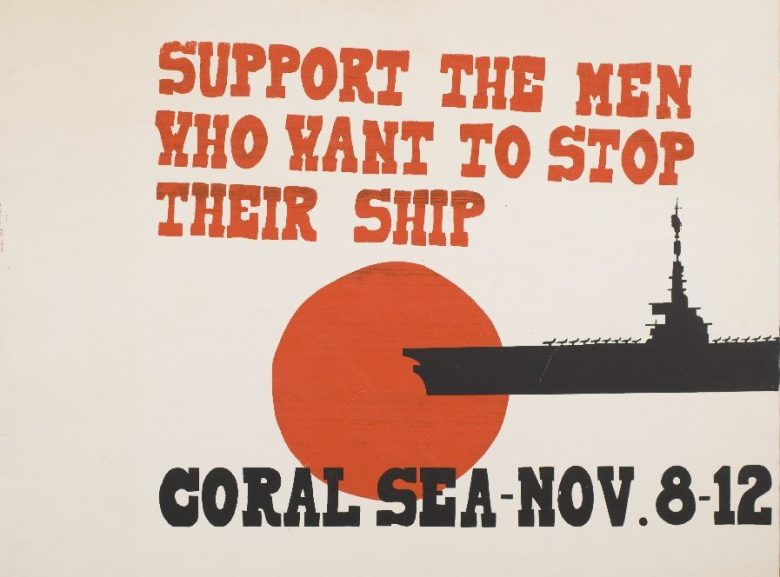 A 1971 poster designed by Doug Lawler in support of crew members of the aircraft carrier Coral Sea who’d signed a petition opposing the Vietnam War. Courtesy: Lincoln Cushing/Docs Populi archive