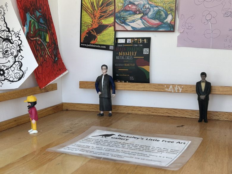 The Little Free Art Gallery in front of 1342 Hopkins St. was created as a neighborhood pandemic project. The art is free for taking — just don’t kidnap the “visitors.” Credit: Iris Kwok