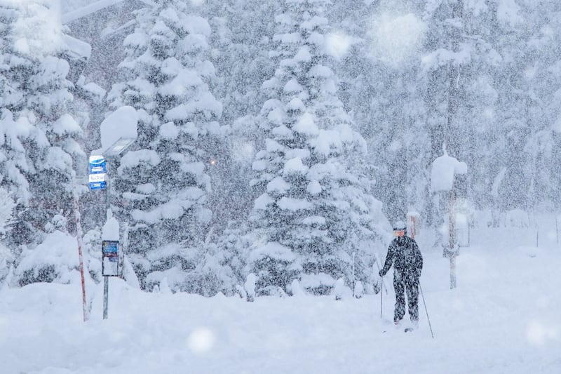 Heavy snow and gusts created “near white-out conditions” in parts of the Sierra Nevada and made mountain pass travel treacherous. Officials said there was a “considerable” avalanche risk around Lake Tahoe, and a winter storm warning was in effect until Friday morning.