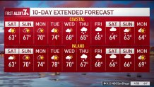 The surf is also up this week, but with the winds at the coast, surfing conditions will be far from ideal. Waves will average between 5 to 8 feet with swells up to 9 feet. High risk of rip currents, and minor flooding and beach erosion is possible. A High Surf Advisory will remain in effect until 11 a.m. Saturday.