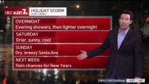 The last bout of rain from an atmospheric river storm that hit San Diego County during Christmas week is expected to bring light to moderate showers for Friday evening, with a possibility of a few lingering showers overnight, NBC 7 meteorologist Greg Bledsoe said.