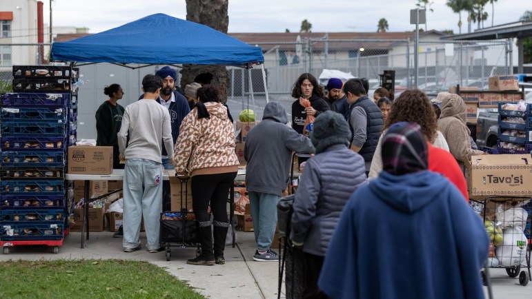 People wait in line during a food distribution drive on Nov. 22, 2025. Credit: ERIKA TAYLOR, Voice of OC