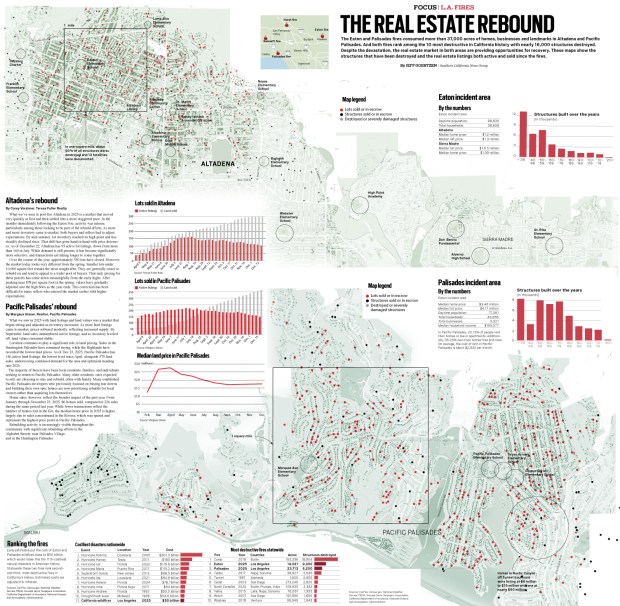 The Eaton and Palisades fires consumed more than 37,000 acres of homes, businesses and landmarks in Altadena and Pacific Palisades.