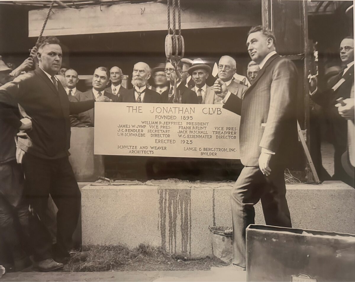 Club President William Jeffries sets the cornerstone on Feb. 26, 1925Credit: Photo courtesy of the Jonathan Club
