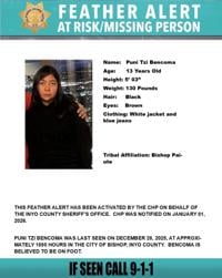 13-year-old Puni Tzi Bencoma was last seen on foot on December 28 in Bishop at around 6:30 p.m.