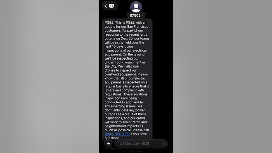Text from PG&E to San Francisco customers