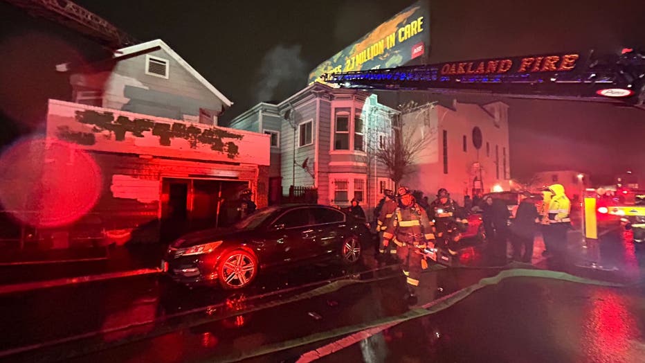 The call of the fire came in at 8:19 p.m. about a building on fire. The Oakland Fire Department said firefighters were at the scene within two minutes and spotted flames at the rear of the property. Firefighters began to fight the flames with water.
