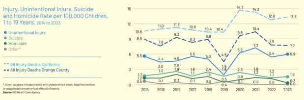 is a solid indicator of poverty, the report said. There were 113 deaths among those aged 1 to 19 in Orange County in 2023, for a mortality rate of 15.4 deaths per 100,000.