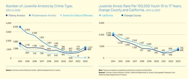Juvenile crime and prosecution are down dramatically over a decade — changes in law to make gang affiliation harder to prove playing a part — but felony arrests among juveniles accounted for 43.4% of child arrests in 2023, up from 25.2% in 2014.