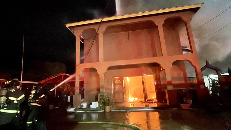 Crews race to a 3-alarm fire at the Buddhist temple on Foss Avenue. Jan. 5, 2026 Photo: San Jose Fire DepartmentÂ