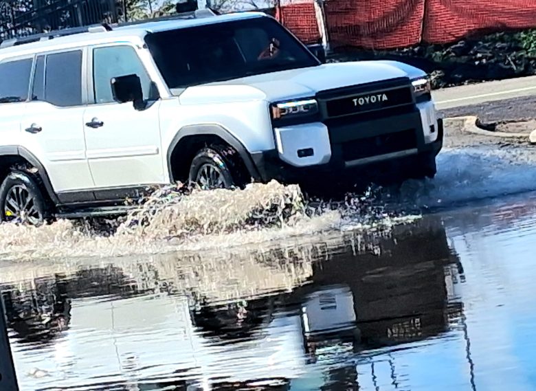 A vehicle drives through water at the I-80 frontage road off-ramp onto Hearst Avenue around 1 p.m. on Jan. 3. Credit: Staci Prado/BeFree Photography