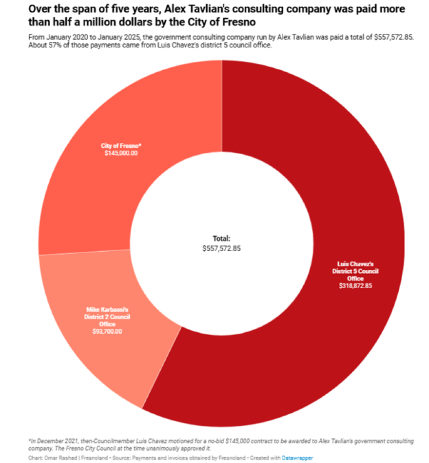 Those documents show that the City of Fresno paid Tavlian’s consulting company $557,572.85 between January 2020 and January 2025.
