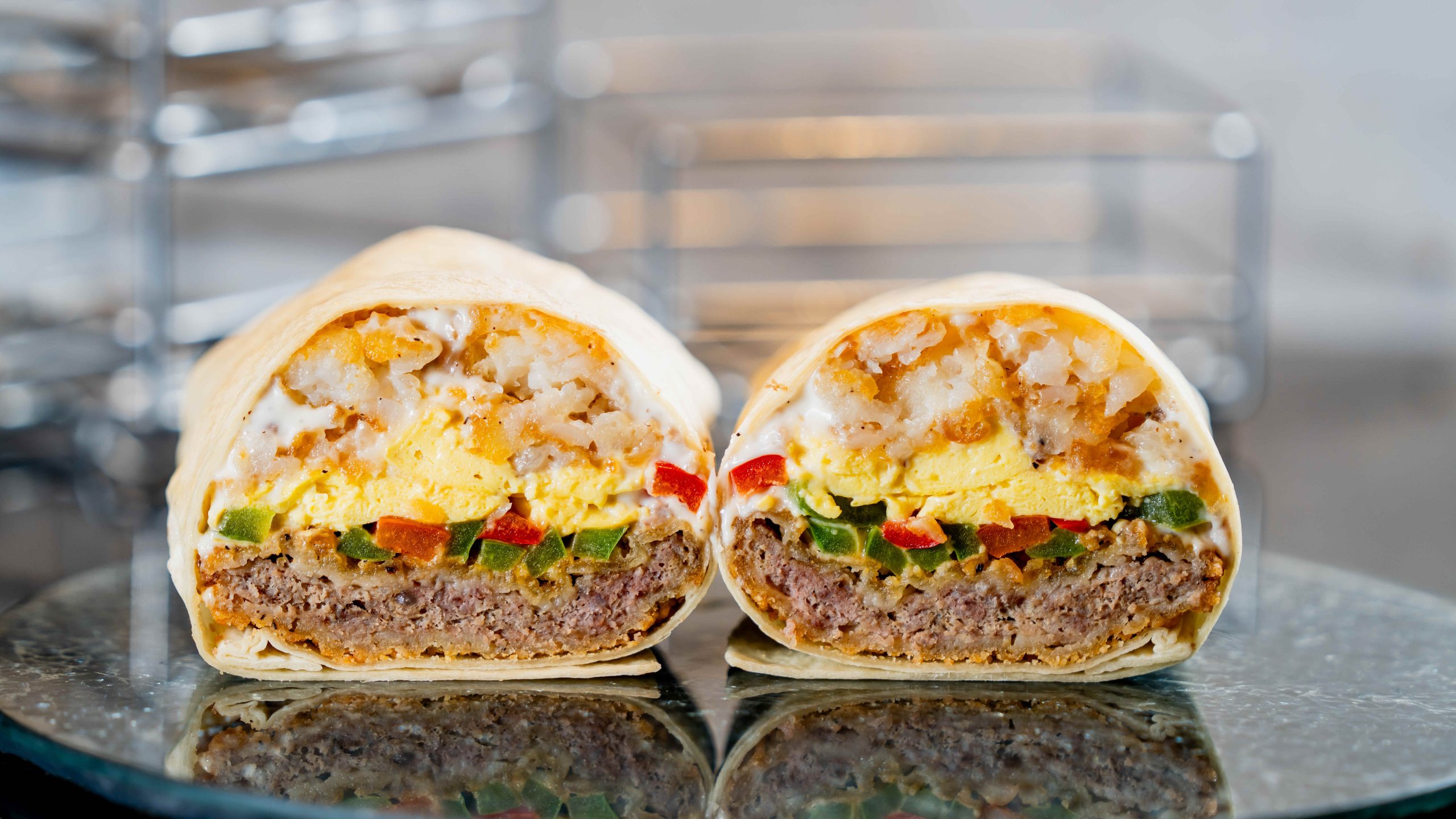 Chicken-fried Steak Burrito at Studio Catering Co.: Sautéed vegetables, egg, and country gravy with potato bites