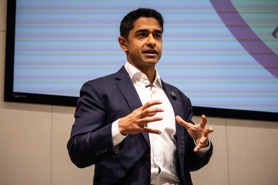 Saikat Chakrabarti answers a question at the candidate forum for California’s 11th Congressional District on Wednesday. Photo by Mariana Garcia.