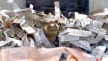 A long-tailed weasel scurries from within newspaper the San Diego Humane Society on Jan. 8, 2026. (San Diego Humane Society)