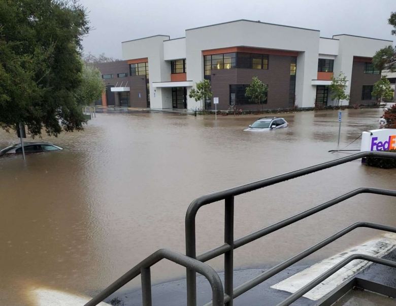 Tank Farm Road and Higuera Street flood in a rainstorm on Monday, Jan. 9, 2023. Credit: Megan Wong / Courtesy